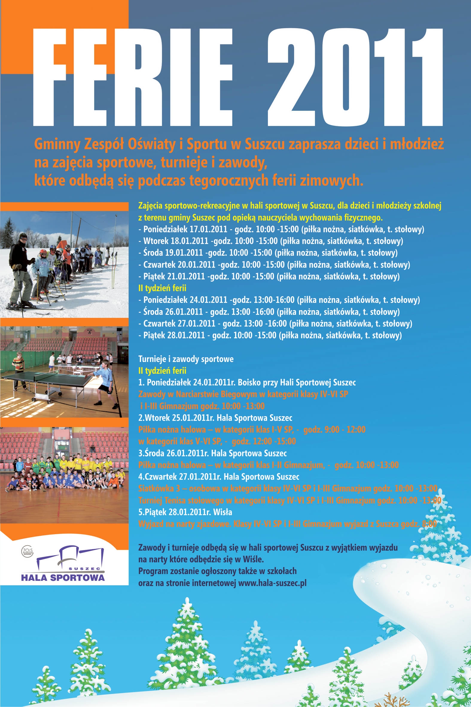 Gminny Zespół Oświaty i Sportu w Suszcu zaprasza dzieci i młodzież na zajęcia sportowe, turnieje i zawody, które odbędą się podczas tegorocznych ferii zimowych.