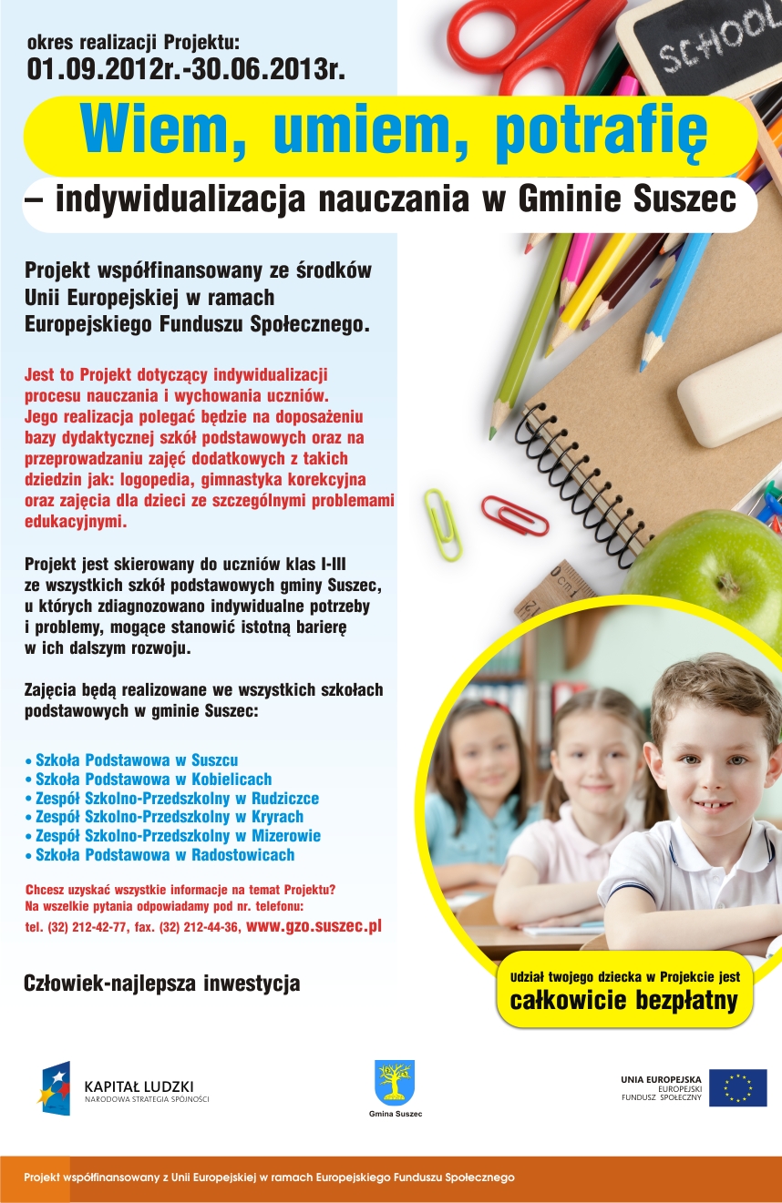 Rozpoczynamy realizację projektu pn. "Wiem, umiem, potrafię - indywidualizacja nauczania w Gminie Suszec"