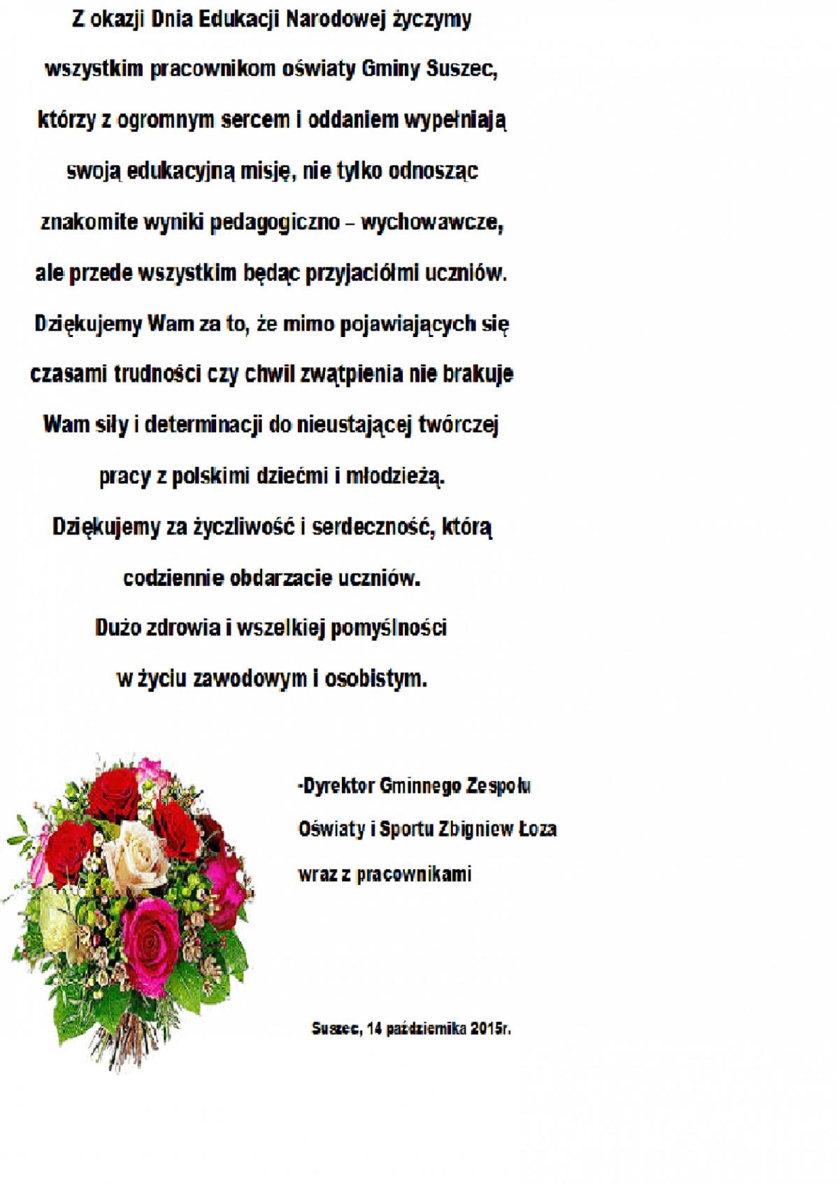 Życzenia z okazji Dnia Edukacji Narodowej 14.10.2015 r.